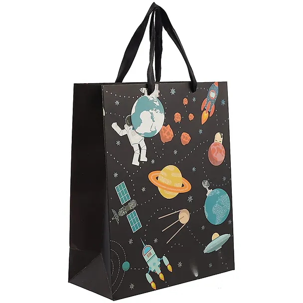 Племянник мужа увлекается космической тематикой. Уже решили подарить ему книги связанные с космосом, но оставался вопрос о том, как преподнести. Просто обернуть в упаковочную бумагу было бы слишком банально, учитывая что мы любим заморачиваться. И тут листая сайт читай город я натыкаюсь на пакет с космосом. Купила не раздумывая. Размеры тютелька в тютельку. Получатель подарка будет теперь в восторге.