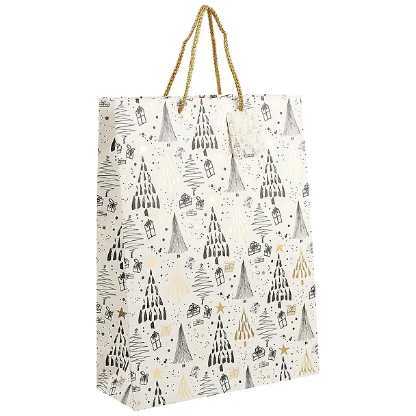 Пакет А3 42*32*11,5 "Golden tree" Новый год, бумага матовый ламинат