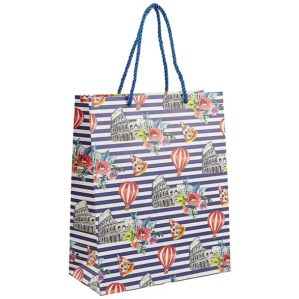 Пакет подарочный бумажный А4 26*32*12.5 "Города и полосы", нейтральный, матовый ламинат.