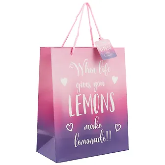 Пакет «Пожелание» сделан из плотной бумаги и украшен градиентом с мотивирующей надписью. Он отлично подойдёт для упаковки подарка имениннику любого возраста.