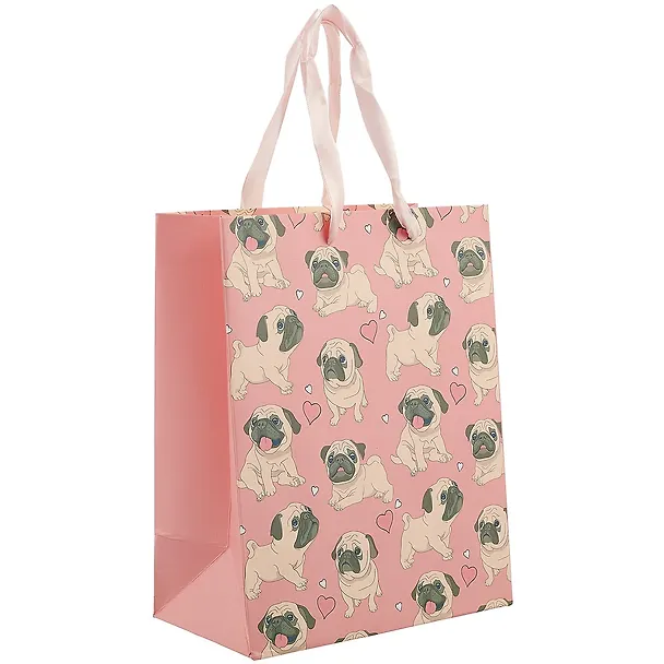 Подарочный пакет «Мопсы на розовом», А5