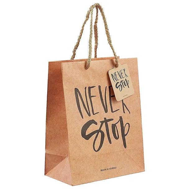 Пакет «Крафт» сделан из плотной бумаги с крафтовой текстурой и мотивирующей надписью. Он отлично подойдёт для упаковки подарка имениннику любого возраста.
