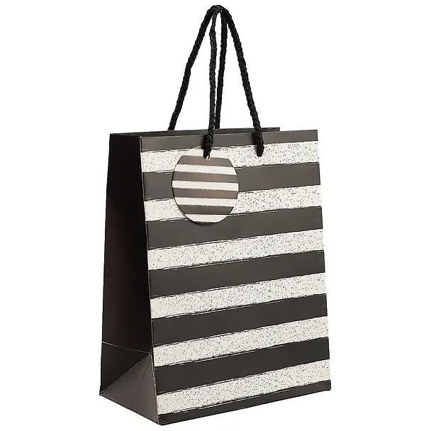Прелестный пакетик! Очень стильный, и, несмотря на мрачный цвет, выглядит вполне уместно для праздника. В таком пакете дарить подарок будет вдвойне приятнее)).  Радует низкая стоимость и качество изделия — картон очень плотный, а ручки крепкие. Хотелось бы , чтобы в продаже были такие же пакеты, но других цветов - настолько понравился)