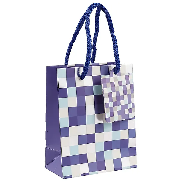 Пакет «Синие клеточки» украшает принт в виде квадратов разных оттенков синего и бежевого цвета.