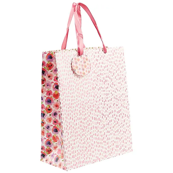 Пакет «Розовые розы» сделан из плотной бумаги и украшен нежным принтом в виде розовых и бежевых пятнышек. Пакет отлично подойдёт для упаковки подарка юной мечтательной девушке.
