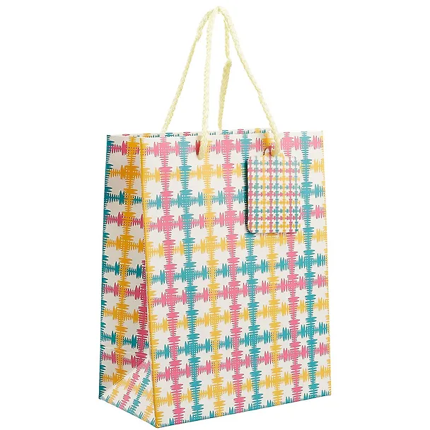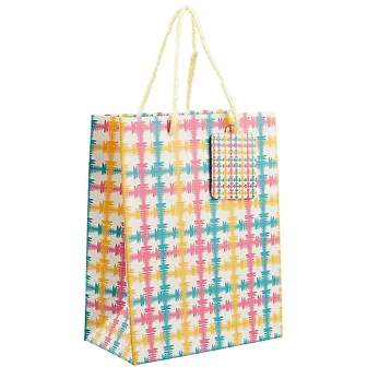 Пакет с яркими цветными узорами понравится всем творческим активным людям.