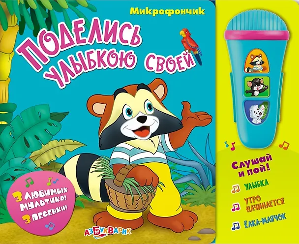 Ваш малыш любит петь? Подарите ему книжку с чудо-микрофончиком! Нажимая на кнопочки, ребёнок услышит 3 веселые песенки из популярных мультиков и сможет подпеть Крошке Еноту, Чучелу-Мяучелу и медвежонку Умке. А мама прочитает малышу мультсказки о приключениях любимых героев.