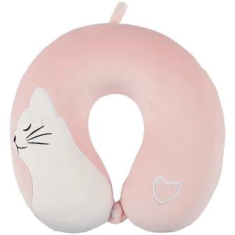 Подушка на шею с кнопкой «Белый котик на розовом фоне», (28х30 см)