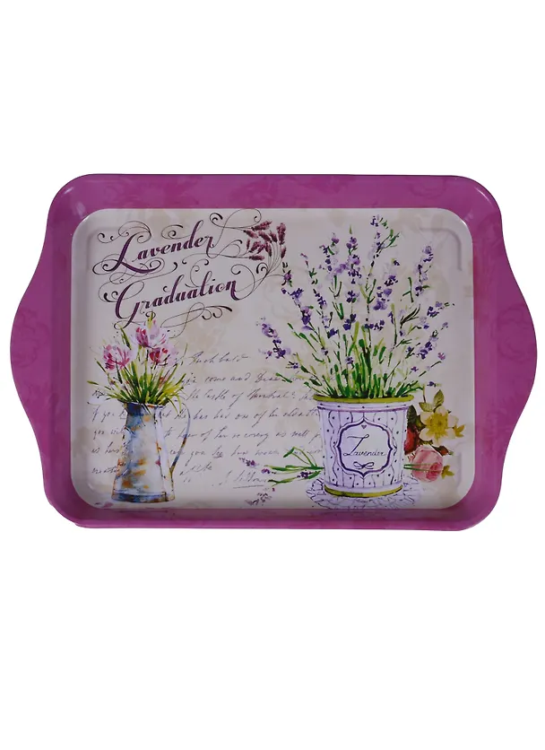 подносик мини. ну прям крошечный по размеру) цвет красивый лавандовый, выглядит аккуратно и эстетично. может не очень практичный, но кто любит красивые аккуратные вещи наверное оценит. цена,на мой взгляд, завышена. Благо со всеми бонусами и промокодами достался за символическую сумму 85 рублей. поставила на кухню. использую для хранения банок(Цикорий, какао,чай).