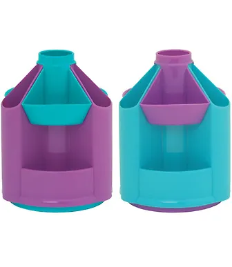 Для меня подставка не нашла практического применения, т.к. вмещает в себя всего несколько ручек и карандашей (маркеры не влезают) и очень много места для мелочи (ластики, скрепки), которой у меня наоборот мало. Я выбрала стакан для своих пишущих инструментов, а эту подставку отдала ребенку. И теперь у нас есть весёлая двухэтажная каруселька для маленьких игрушек и пупсиков.