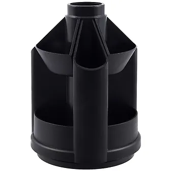 Подставка для карандашей и ручек и др. канцелярских принадлежностей. Вместительная, компактная, вращающаяся, что очень удобно при использовании. Чёрного цвета, без запаха. Доставили в хорошем состоянии, без каких -либо сколов и царапин, хотя упаковки как таковой не было. Пластмасса достаточно плотная. Фирма хорошая. Для школьника подойдёт.