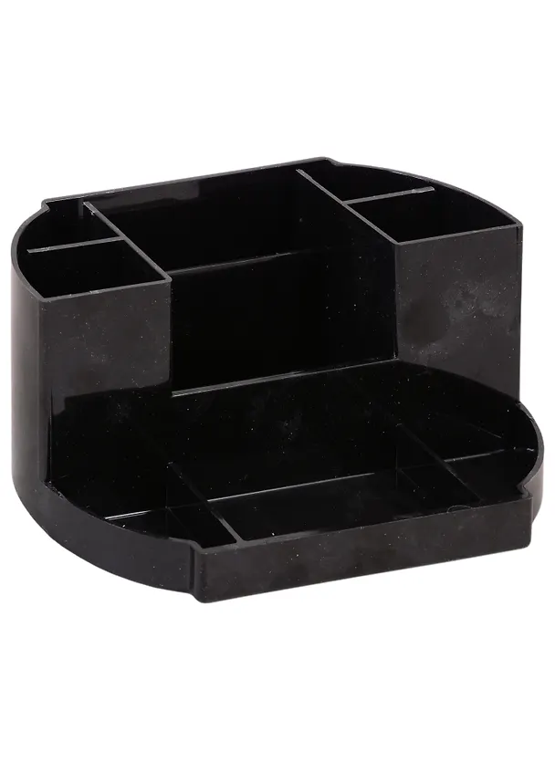 Неплохой органайзер для канцелярии, заказывала доставкой по акции со скидкой для домашнего использования. Может быть не самая удобная конфигурация отделений, но если не так много в него напихивать - вполне удобно) В целом - классическая черная подставка для ручек и прочих нужных мелочей, ничего особенного. Товар был хорошо упакован, пришел без повреждений, ждала не долго.