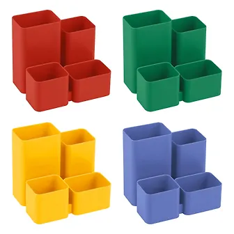 Подставка из крепкого, плотного пластика, очень устойчивая, приятное цветовое оформление (у меня синяя). Не смотря на свою компактность, она очень вместительная-именно такую я и искала. Благодаря разным по высоте отделениям сюда вошло много предметов: ножницы, линейки, канцелярский нож, ручки, степлер, карандаши, расстеплер, ластик, скрепки, самоклеющиеся стикеры-закладки, точилка, узкий скотч. Также она подойдет не только для дома, но и для офиса. Если вы ищете компактную и вместительную подставку под канцелярию, можете смело покупать данную подставку. Рекомендую к покупке!