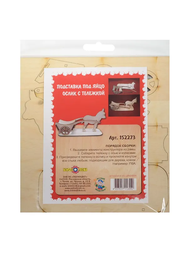 Подставка под яйцо Ослик с тележкой (152273) (дерево) (сборная)