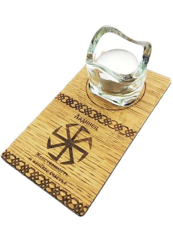 Форма подсвечника прикольная, выполнен из прочного стекла, стенки толстые. Свеча, которая уже идет в комплекте очень маленькая, прогорела быстро. Но можно конечно заменить на новую. Подставка из дерева, зашлифована, с оригинальными узорами на поверхности.