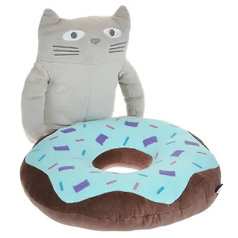 Забавная подушка в виде пончика и котика Don Don просто незаменима в автомобиле, детской и в офисе. Выполненная из мягкого бархатистого материала, эта подушечка предназначена для расслабления мышц спины. Перекиньте пончик через спинку стула, при этом котик останется с обратной стороны спинки. Теперь откиньтесь на мягкую упругую подушечку и можно работать. Кроме того, подушку можно разъединить и использовать как две отдельные интерьерные подушечки.