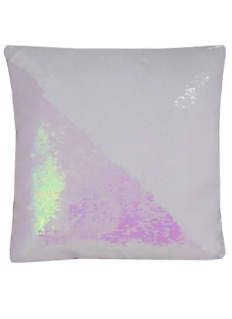 Подушка с пайетками белая с серебром (Р3424) (37х37)