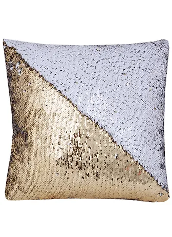 Подушка с пайетками белая с золотом (3887) (37х37)