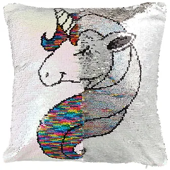 Единорог – прекрасное фантастическое создание, исполняющее желание, приносящее удачу и избавляющее героев сказок и легенд от разных напастей. Единорог на этой подушке наделён волшебной способностью радовать всех своим блеском и украшать интерьер. Приютите такого малыша у себя дома, погладьте по гриве и любуйтесь тем, как она меняет цвет.