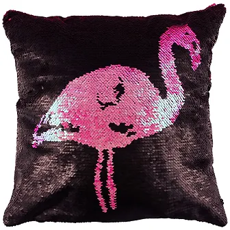 Яркая подушка с пайетками добавит блеска вашему дому. Проведите по пайеткам ладонью и посмотрите, как они меняют цвет! Розовый фламинго становится чёрным, и наоборот. На свету блёстки переливаются и сверкают, словно диско-шар. Праздник всегда будет с вами!