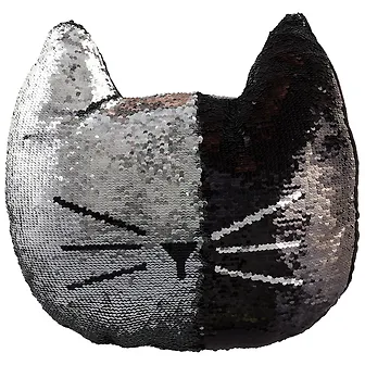 Подушка с пайетками Кот черный с серебром (текстиль) (36см)