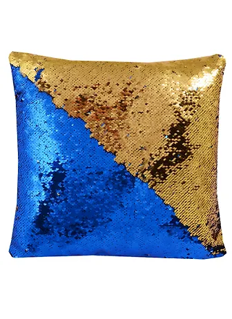 Подушка с пайетками синяя с золотом (3801) (37х37)