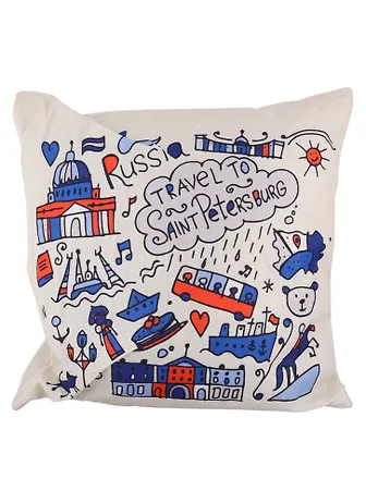 Подушка «СПб» Travel to Saint Petersburg добавит в интерьер настроение путешествий и напомнит о любимом городе. Цветные рисунки со знаковыми петербургскими мотивами хорошо смотрятся на диване, кресле или в детской комнате, а классическая квадратная форма удобна для отдыха. Текстильный чехол приятен на ощупь и подходит для ежедневного использования. Такая подушка станет удачным сувениром и небольшим подарком для детей и взрослых (6+).