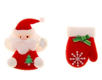 Набор мягких новогодних подвесок в виде варежки и Деда Мороза.