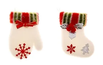 Набор мягких новогодних подвесок в виде варежки и сапожка