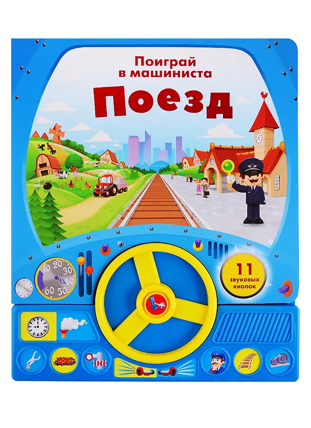 Всем занять свои места! Поезд отправляется. Куда же он поедет? Вашего ребёнка ждёт увлекательное путешествие! Надо только крутить руль и нажимать на звуковые кнопки. Разобраться с их назначением помогут их изображения рядом с текстом. Счастливого пути!