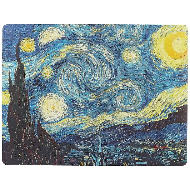 Отличный товар,покрытие для стола легкое и прочное,ну и конечно огромный плюс изображение в виде картины гениального Ван Гога \'\'Звездная ночь\'\'.Приобретала данное покрытие для рисования акварелью.