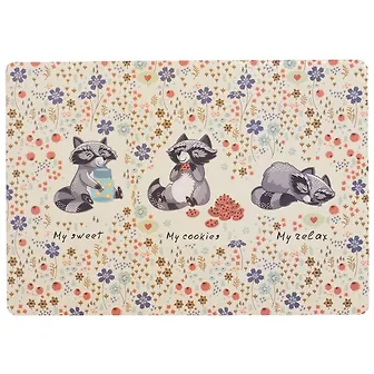 Покрытие «Енот в цветах» очень яркое. Его украшает рисунок, который порадует и маму, и малыша постарше.