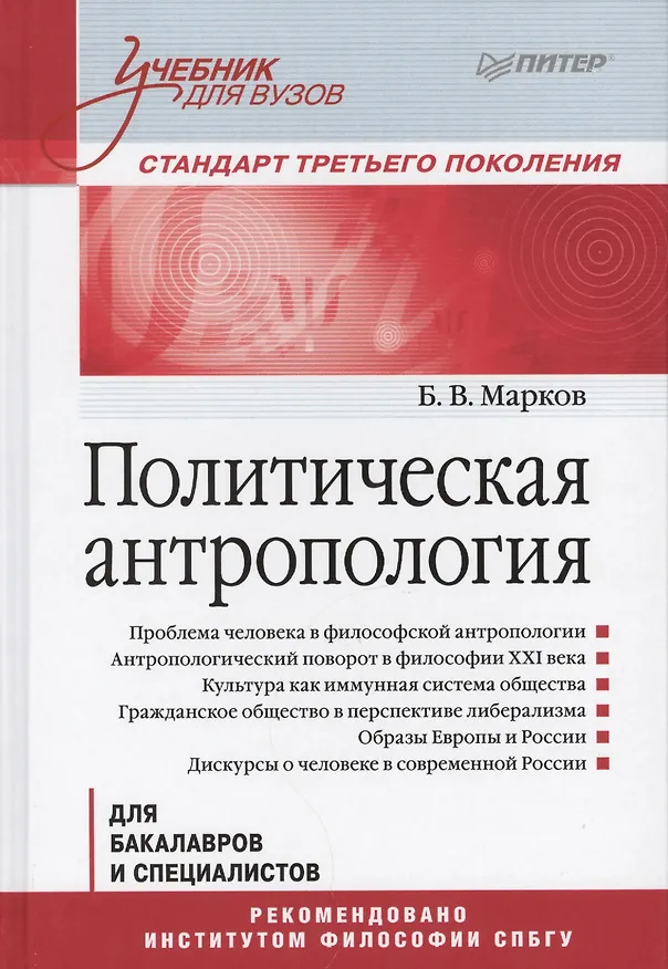 Главной темой учебника, написанного известным специалистом в области философской антропологии Б.В.Марковым, является антропологический поворот в философии XXI века. Осмысливая современные формы политического, автор стремится расширить его понимание. Учитывая революцию в сфере масс-медиа, в учебнике анализируются новые коммуникативные модели политического, разрабатываемые в лингвистике, теории коммуникации, антропологии, этике и в когнитивных науках. Именно эти дисциплины имеют дело со сложными системами, искусство управлять которыми является задачей политики. Игнорируя современные информационные технологии, невозможно правильно поставить и решить задачу единства общества.