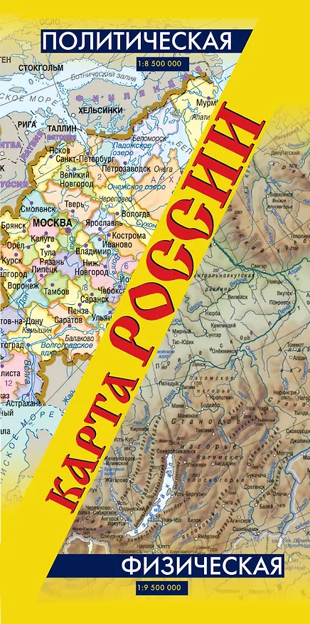 Политическая, физическая карта России: масштаб 1:8500 000 (двухсторонняя, складная)
