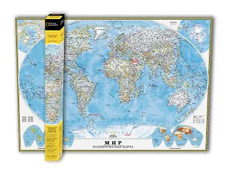Политическая карта мира издательства National Geographic в масштабе 1:43 300 000 (в 1 см 433 км) предлагается в фирменной картонной коробке, на которой в цвете представлен фрагмент карты. Размеры коробки: длина 700 мм, ширина и высота 63,5 мм.