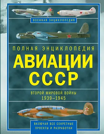 В настоящем издании представлена полная информация об авиации СССР периода Второй мировой войны – бомбардировщиках, штурмовиках, истребителях и разведывательных самолетах, а также гидросамолетах того времени. В издании содержатся факты из истории создания самолетов, приведены их летно-технические характеристики, показаны конструкция и вооружение, сопровождающиеся большим количеством рисунков, фотографий и схем.