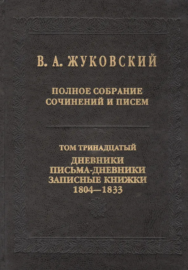 .В 13 и 14-м томах собрана дневниковая проза Жуковского, включающая три взаимосвязанных раздела: собственно дневники, письма-дневники и записные книжки. 13-й том содержит дневниковые материалы 1804—1833 гг., от первых дошедших до нас размышлений юного поэта, ориентированных на тип «франклинова журнала», записной книжки «Разные замечания», писем-дневников, обращенных к Маше Протасовой, материалов первого заграничн