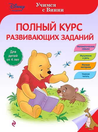 Комплексное развитие основополагающих умений и навыков малыша! Чтение, письмо, логическое мышление, счёт, а также мелкая моторика! Сразу три занимательные истории о приключениях Медвежонка Винни и его друзей! Красочные иллюстрации! Интересные задания!