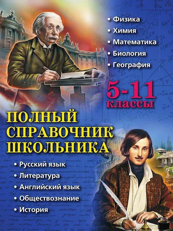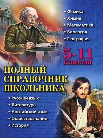 ""Полный справочник школьника: 5-11 классы"" - это идеальное издание для школьников, которое содержит все необходимые теоретические материалы по основным школьным предметам. В этом справочнике вы найдете полную информацию по русскому языку, литературе, истории, обществознанию, английскому языку, математике, физике, химии, биологии и географии.