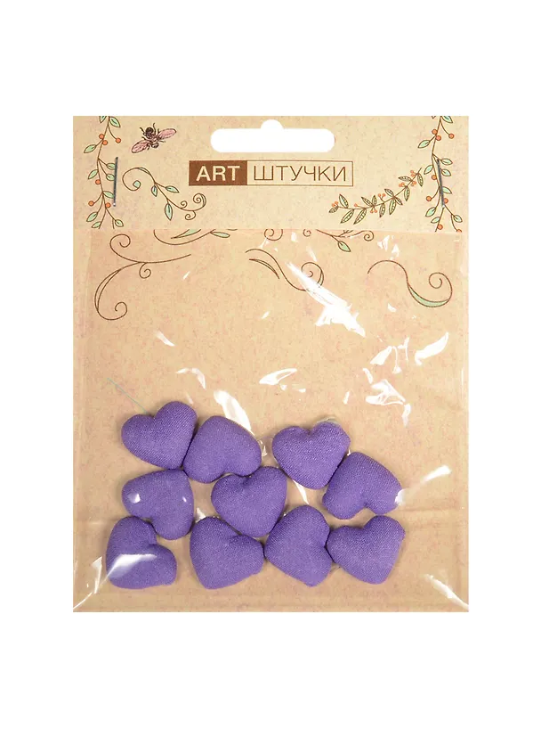Полубусины сердечки на металле 1.8 см, 10 штук в пакете с подвесом сиреневые