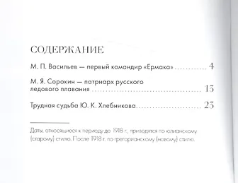 Капитаны ледоколов всегда относились к элите флота. На страницах издания рассказывается о трех выдающихся моряках, чьи биографии оказались в разное время связаны с "дедушкой ледокольного флота" - знаменитым "Ермаком". М. П. Васильев участвовал в его постройке и первых плаваниях, на долю м. Я. Сорокина выпали рекордные навигации 1930-х годов и трудные испытания военного лихолетья, а Ю. К. Хлебникову довелось не только участвовать в последних плаваниях легендарного ледокола, но и застать появление атомоходов.