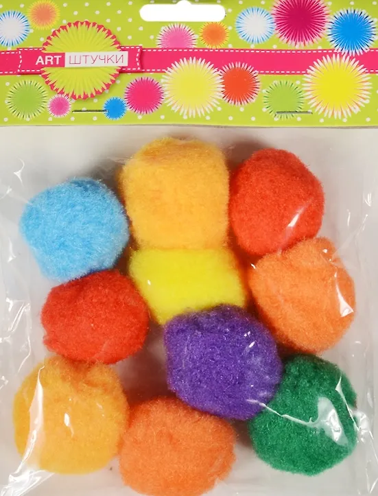 Набор помпонов - 10 штук в упаковке, ассорти цветов.