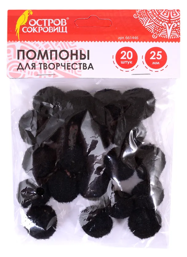 Помпоны для творчества черные (25 мм) (30 шт) (661446) (3+) (упаковка) (Остров сокровищ)