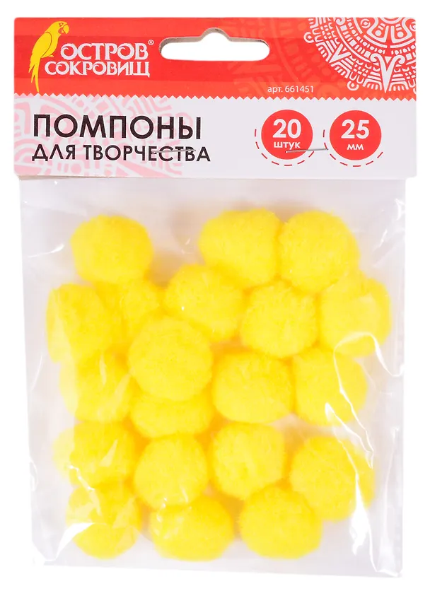 Помпоны для творчества желтые (25 мм) (30 шт) (661451) (3+) (упаковка) (Остров сокровищ)