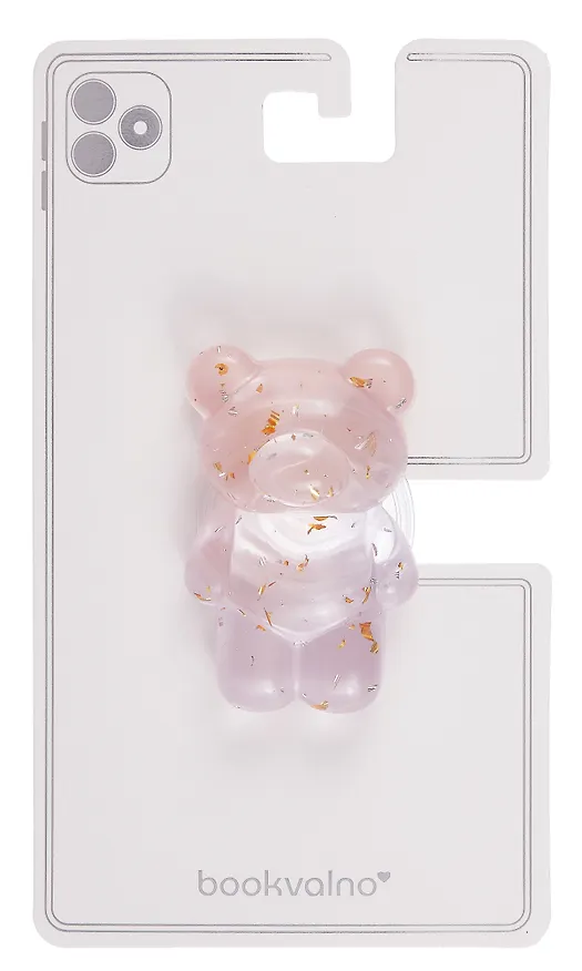 Попсокет Мишка перламутр с блестками (ПВХ) (6,5см) (12-18031-202405-POP9) Bookvalno