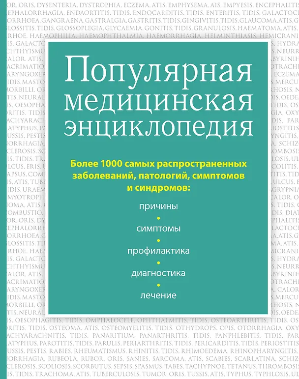 "Авторитетный авторский коллектив представляет Популярную медицинскую энциклопедию. В ней содержится более 1000 самых распространенных заболеваний, различного рода патологий, симптомов и синдромов.
