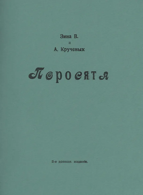 В книгу ПОРОСЯТА для сопоставления с образцами футуристической поэзии Крученых включил стихотворения одиннадцатилетней девочки Зины В. Интерес Крученых к детскому творчеству, как и вообще интерес авангардистов к дилетантизму, "наиву", "примитиву" в искусстве, хорошо известен: Корней Иванович Чуковский в своей статье о футуристах писал: "Нынешняя жажда первобытного привела современных людей к детям, к детской душе. Художники, особливо кубисты, изучают детские рисунки, пробуют им подражать; поэты благочестиво печатают образчики детских стихов. Николай Кульбин в своих лекциях о грядущем искусстве читает стихи семилеток".