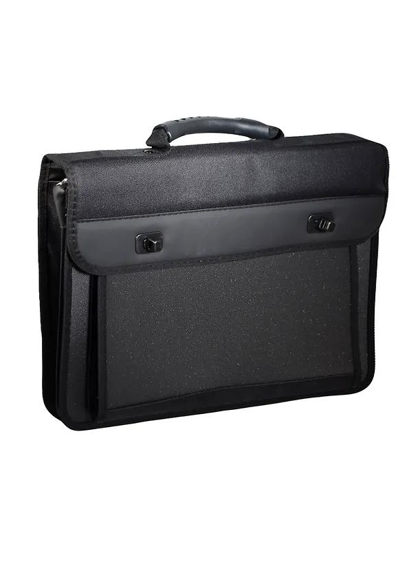 Портфель деловой "MEGAPOLIS" 405*305, ткань черная с серой, 2 отделения, на замках, ремень, Erich Krause