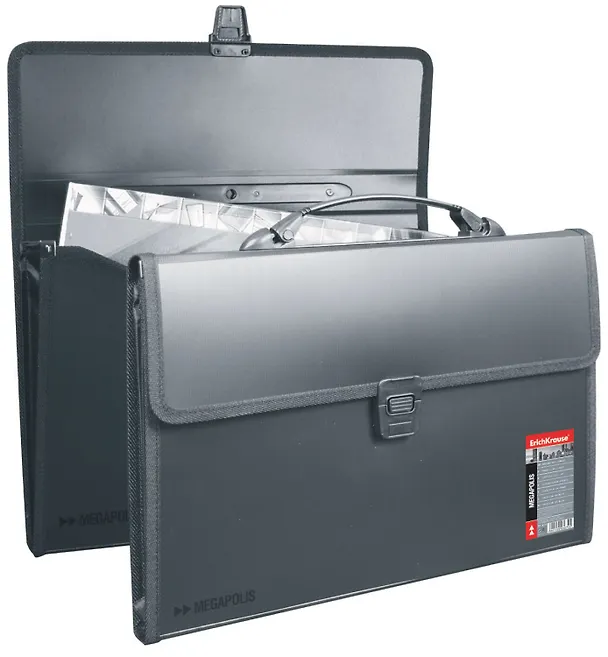 Портфель MEGAPOLIS F/C,3 отд., пластик, окантовка, черный, Erich Krause