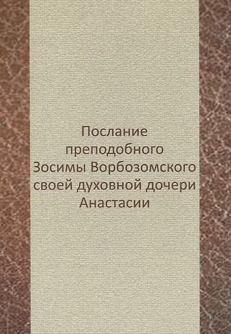 Вашему вемнанию предлагается книга "Послание преподобного Зосимы Ворбозомского своей духовной дочери Анастасии".